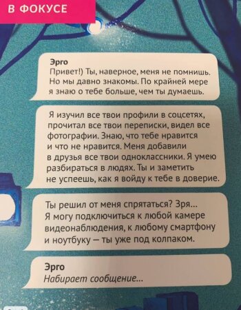 Эта книга мне сразу же напомнила о том, как важно остерегаться на просторах интернета. Она заставляет задуматься о последствиях наших действий и о том, как важно быть бдительными. Я абсолютно уверена, что "Эрго набирает сообщение" станет настоящей находкой для всех, кто ищет увлекательную и захватывающую историю ( даже взрослым, поверьте!! Не только школьникам такую книгу будет интересно читать!)
